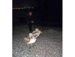 Adana'nın Ceyhan ilçesinde yer fıstığı hasadı yapan bir çiftçi, tarlada uçamayan bir şahin görünce hasadı bırakıp onun yardımına koştu.