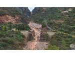 Hatay'da gece saatlerinde etkili olan yağışla birlikte debisi artan derede sel yaşandı, köprü yıkıldı ve yolda da çökme yaşandı.