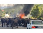 Adana'nın Pozantı ilçesinde otoyolda büyükbaş hayvan yüklü tır alev alev yandı.