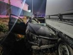 Otomobilin yan yattığı kaza anı kameraya yansıdı