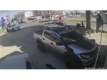 Otomobilin yan yattığı kaza anı kameraya yansıdı