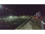 Otomobilin yan yattığı kaza anı kameraya yansıdı
