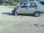 Otomobilin yan yattığı kaza anı kameraya yansıdı