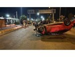 Otomobilin yan yattığı kaza anı kameraya yansıdı