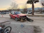 Otomobilin yan yattığı kaza anı kameraya yansıdı