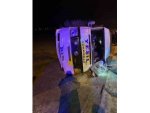 Otomobilin yan yattığı kaza anı kameraya yansıdı
