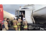 Hatay'da tırla çarpışan tankerin sürücüsü yaralandı. Yaralı sürücü itfaiye ekipleri tarafından kurtarılarak sağlık ekibine teslim edildi.
