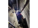 Hatay'da bir evin havalandırma boşluğuna düşen kedi, çevredekilerin ihbarı üzerine itfaiye tarafından kurtarıldı.