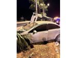 Otomobilin yan yattığı kaza anı kameraya yansıdı