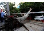 Antalya'nın Manavgat ilçesinde evinin bahçesinde bulunan ağaçtan Trabzon hurmasını toplarken düşen adamın bacağına demir korkuluk saplandı.