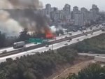 ADANA’DA OTOYOL KENARINDA OTLUK ALAN YANGINI