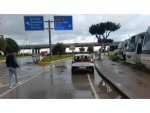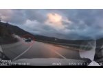 Otomobilin yan yattığı kaza anı kameraya yansıdı