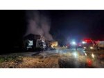 AĞIR VASITA SERVİSİNDE YANGIN ÇIKTI: 2 ÇEKİCİ, 1 KAMYON ZARAR GÖRDÜ