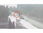 Otomobilin yan yattığı kaza anı kameraya yansıdı
